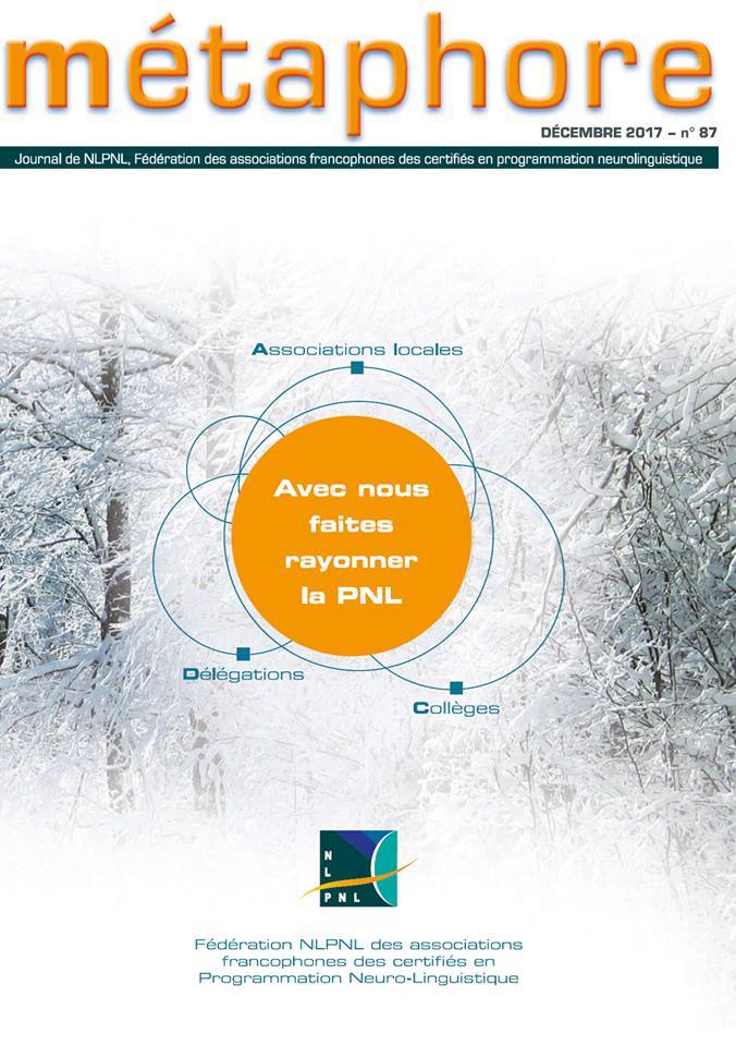 Première de couverture de la revue "Métaphore" de la Fédération des associations des certifiés en PNL", n° 87 de déc 2017.